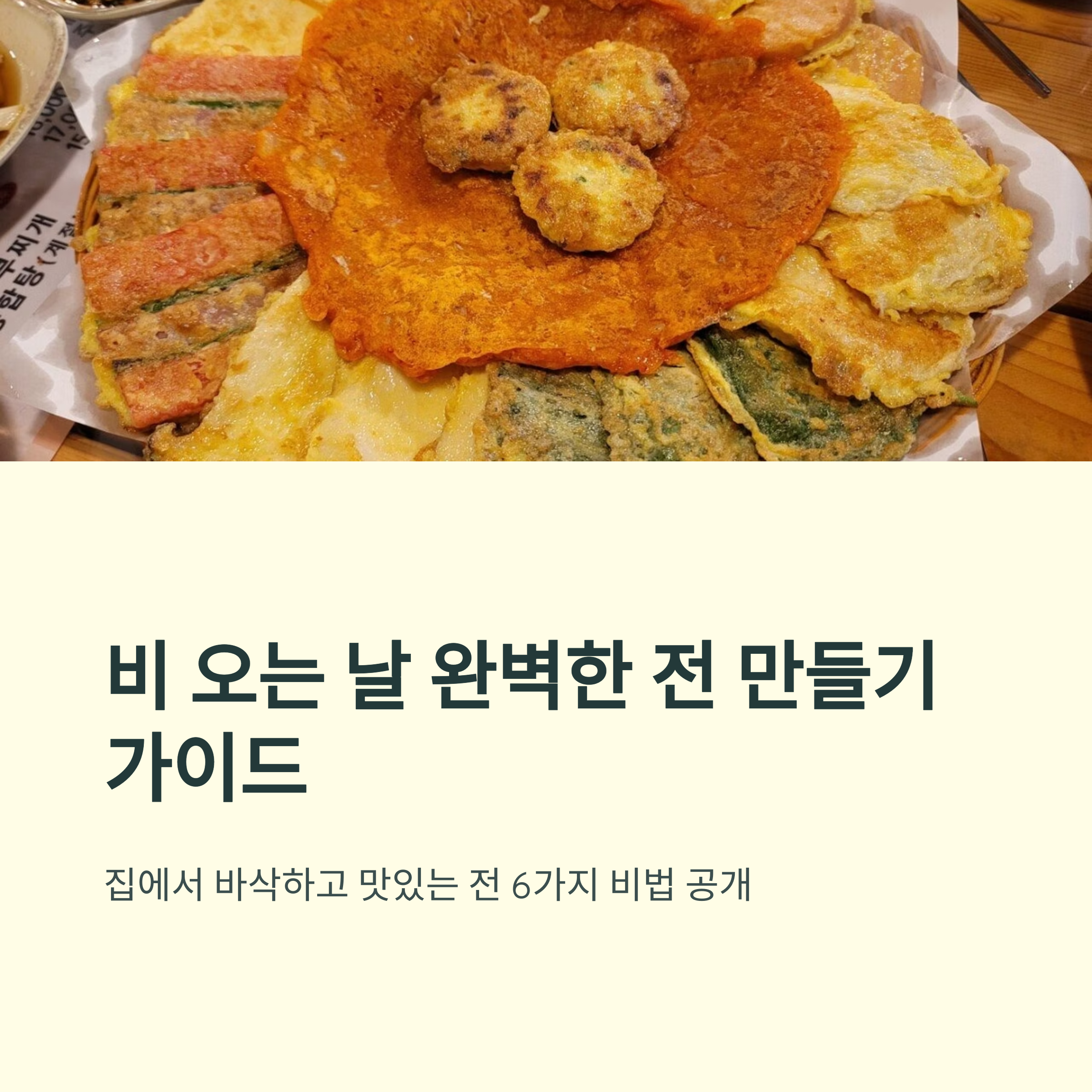 비가 오는 날이면 어김없이 생각나는 음식, 바로 ‘전’입니다. 지글지글 부쳐지는 소리와 고소한 향이 집안을 가득 채우는 순간, 창밖으로 떨어지는 빗소리와 함께 그야말로 최고의 궁합을 자랑하죠. 오늘은 그런 특별한 날을 더욱 맛있고 따뜻하게 만들어 줄 전 레시피를 준비했습니다. 녹두전부터 김치전, 해물전까지 다양한 종류의 전 요리와 함께 재료, 팁, 분위기까지 함께 소개해 드릴게요.